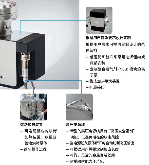 微型 Vaclon 離子泵采用二極泵結(jié)構(gòu),并提供大約 0.4 L/s 的氮氣抽速。2 L/s 型號采用改進(jìn)型二極泵結(jié)構(gòu),能提高在低壓下啟動的能力。