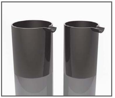 相對于瓷坩鍋而言, 玻璃碳坩鍋展示出更高的導熱性,且不易粘附貴金屬。熱循環次數大量減少。這也就意味著,無需達到瓷坩鍋的加熱溫度,在較低的溫度情況下,加熱線圈就能夠運轉。由于鑄件的周期減少很多,為此,坩鍋的使用壽命相應延長很多